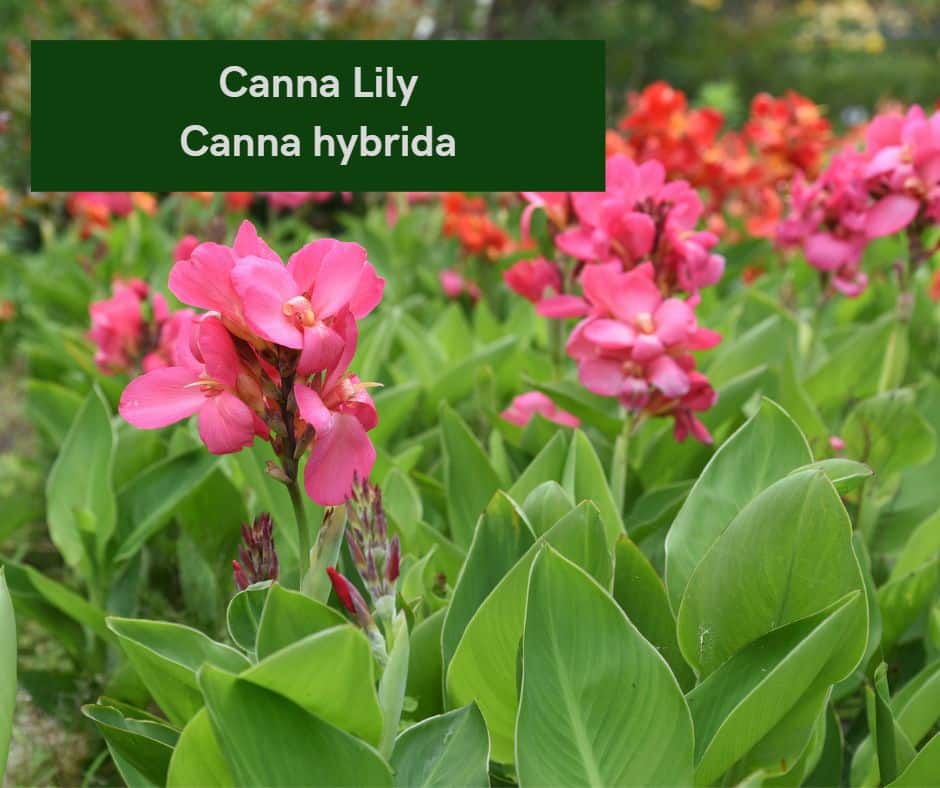 Canna lilies are tropical plants that produce large, showy flowers in shades of red, pink, orange, and yellow. The flowers bloom from late spring to early fall and are a perfect choice for full sun locations. Colorful foliage and flowers make them great plants for tropical gardens. They are drought-tolerant and suitable for USDA zones 8-11.